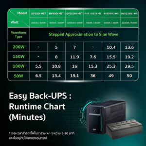 - Easy UPS (BVX1200LI-MS) provides power protection for unstable power conditions, ensuring consistent and reliable connectivity at the most critical moments.